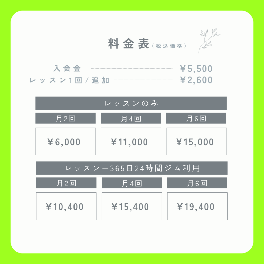 レッスンによって定員が変わりますが6名~10名程度でのレッスンとなります。